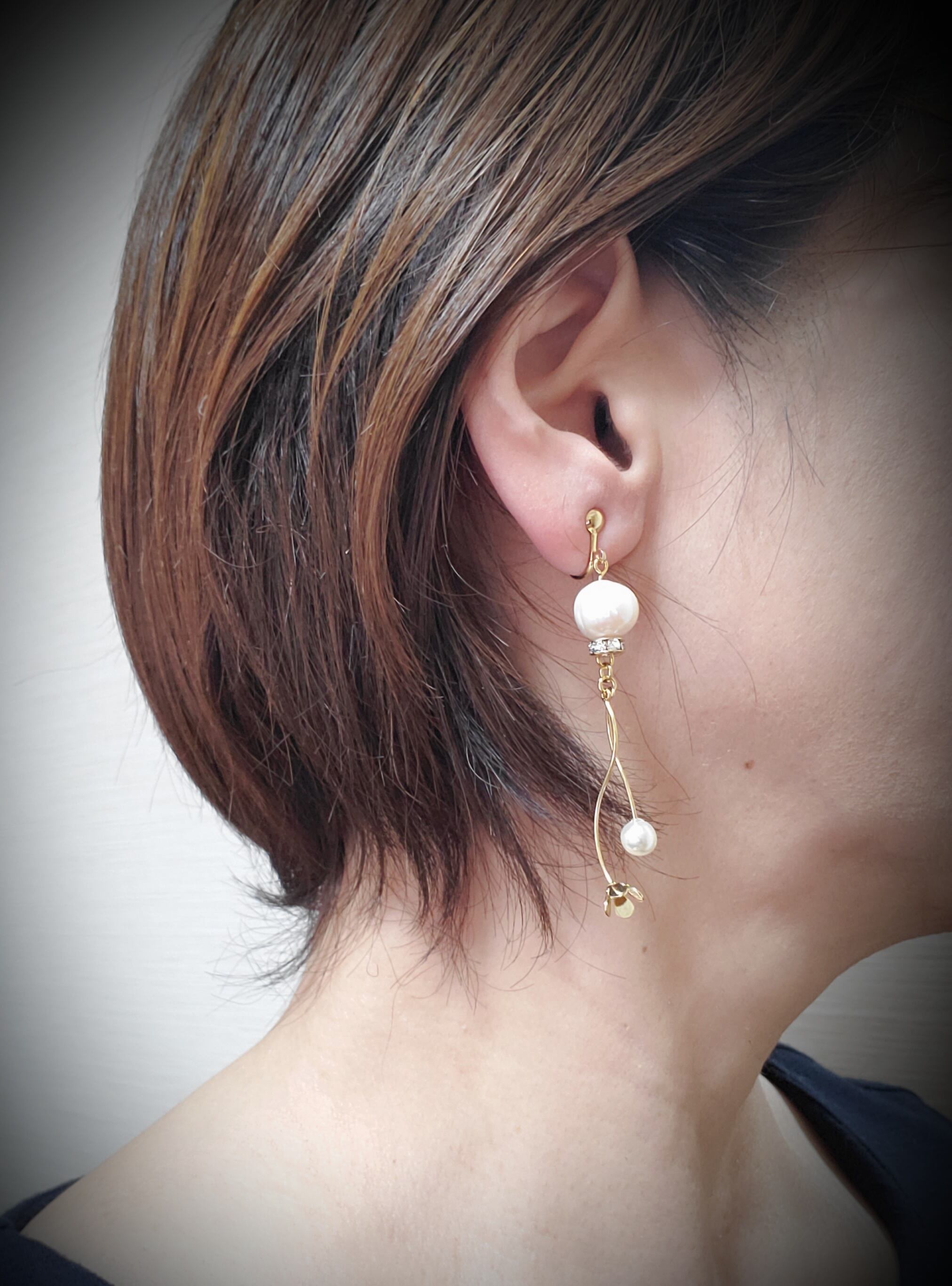 耳元で優しく揺れるお花が可愛いイヤリングです。